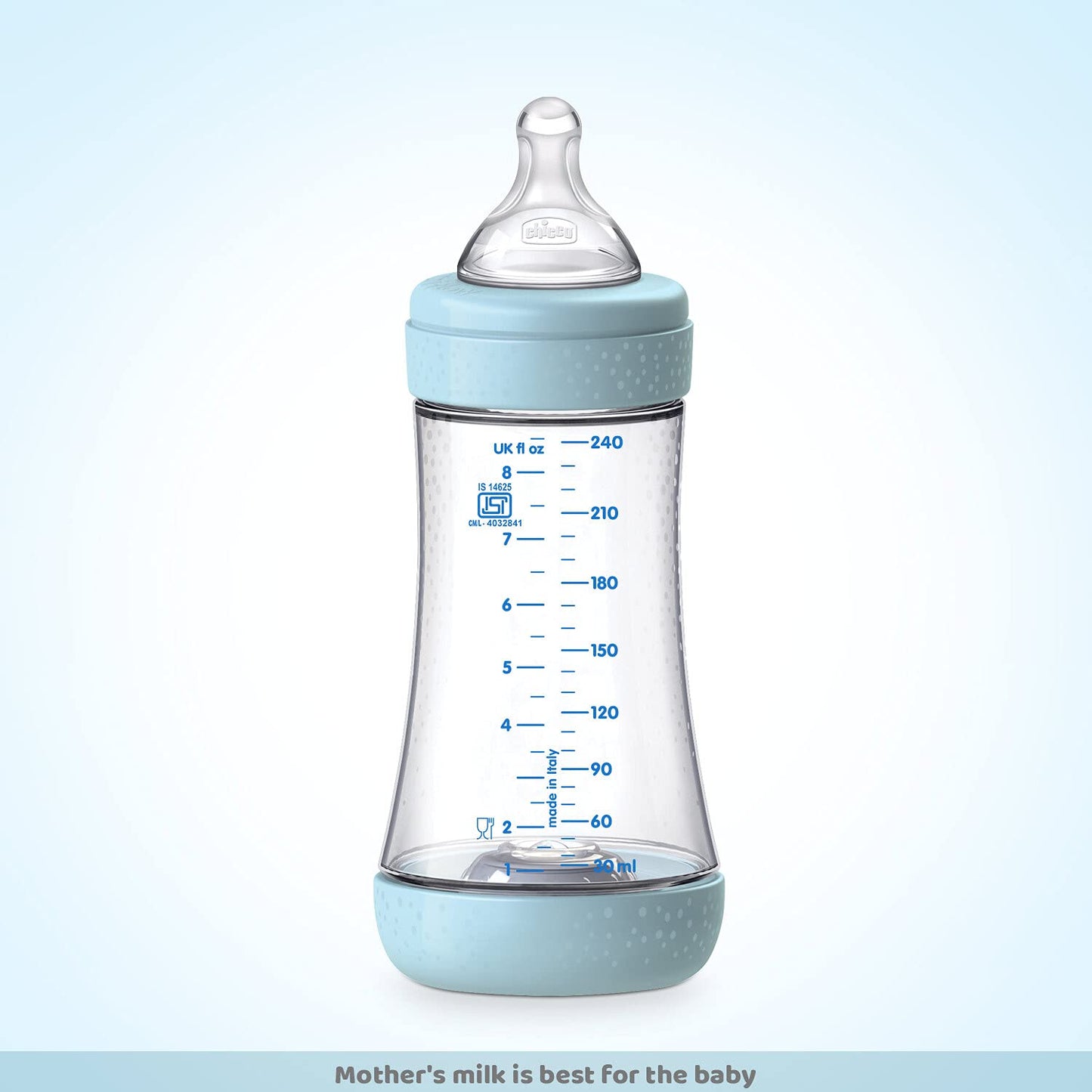 Chicco Perfect 5 Biofunctional Feeding Bottle (240ml) is designed with an advanced anti-colic system to ensure a natural and comfortable feeding experience for babies. Featuring a soft, hygienic silicone teat, it adapts perfectly to the baby’s sucking rhythm, reduces colic and reflux, and supports correct oral development. Made from safe, BPA-free materials, it ensures both comfort and safety for everyday feeding.
