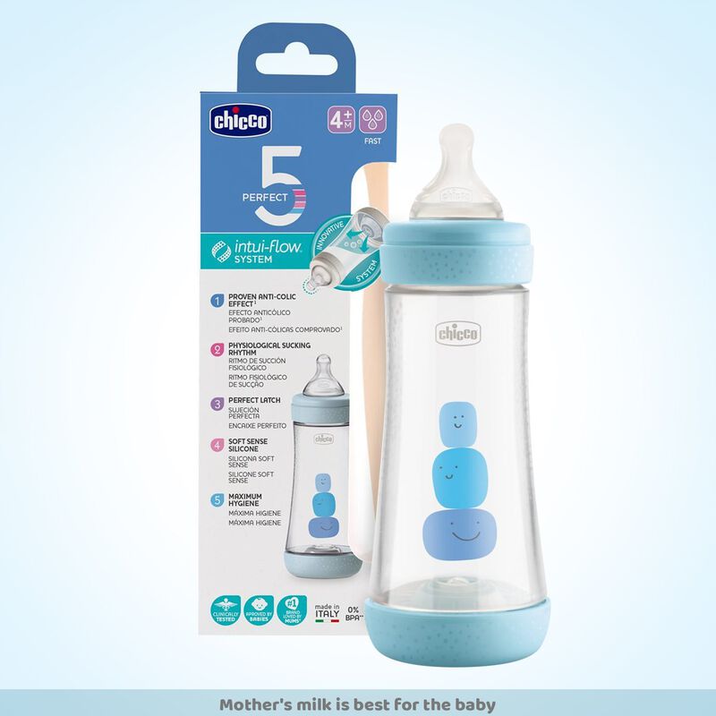 Chicco Perfect 5 Feeding Bottle (300ml) is a biofunctional baby bottle designed with an advanced anti-colic system for a natural and relaxed feeding experience. Its soft, hygienic silicone teat adapts to the baby’s natural sucking rhythm, helping to reduce colic, reflux, and irritability. Made from BPA-free, safe materials, it ensures comfort, safety, and proper oral development while being easy to clean and sterilize.