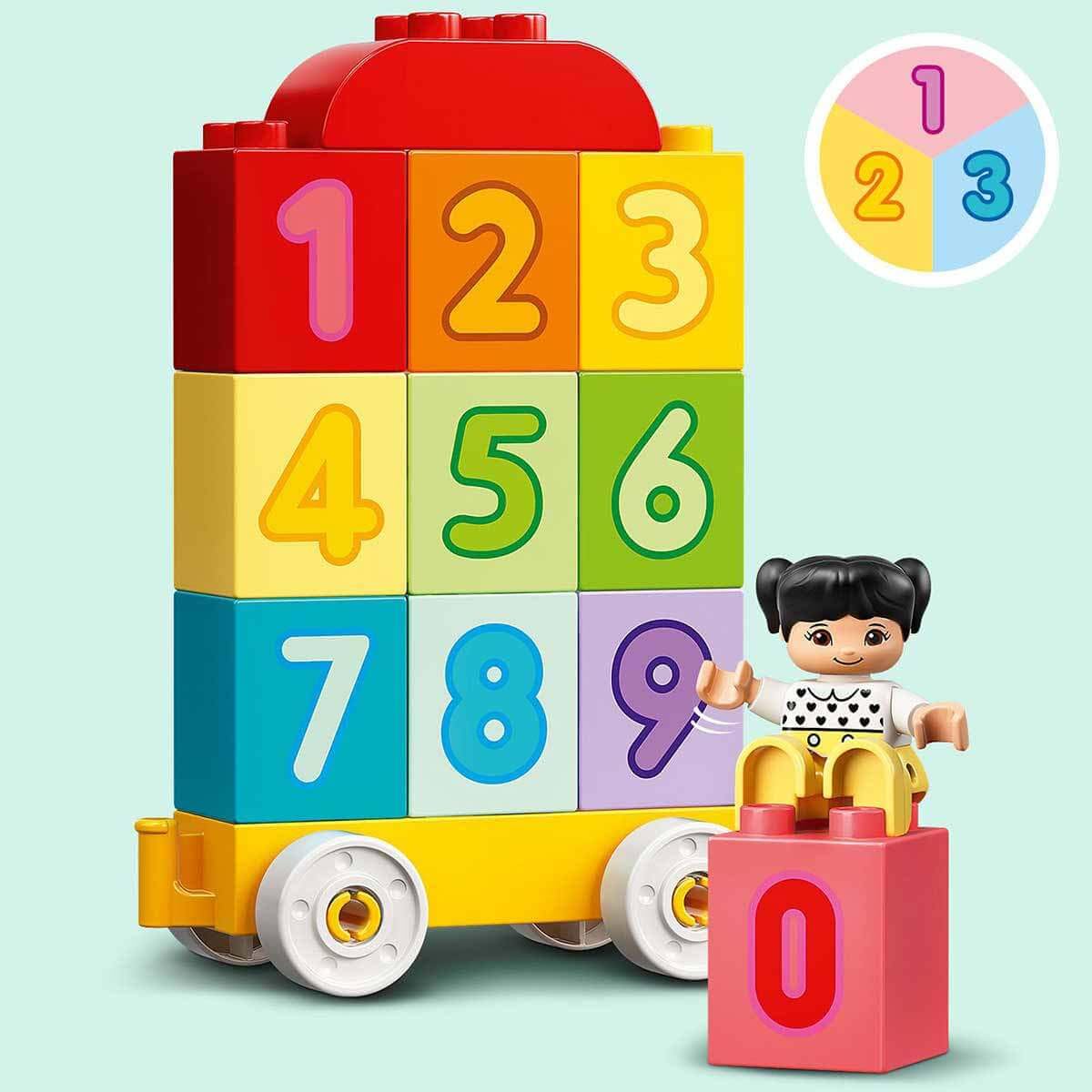 The LEGO Number Train β Learn to Count is a colourful, educational building set designed to make early learning fun for toddlers. With easy-to-handle bricks and numbered blocks from 1 to 10, children can build, rebuild and explore counting, number recognition and simple construction skills. The set includes a moveable train, wagons, and friendly character figures, making it a playful introduction to numbers and creativity.