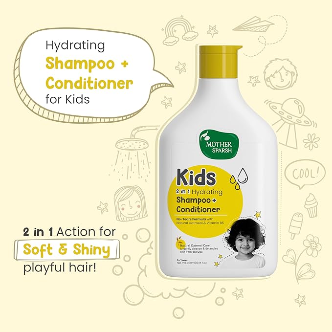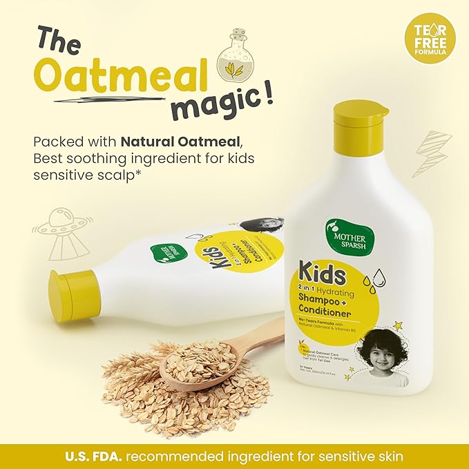 - 🎈 Natural Oatmeal Enriched: Formulated with the soothing and hydrating benefits of Natural Oatmeal, this Kids 2-in-1 Hydrating Shampoo + Conditioner is designed as a gentle baby shampoo for kids, caring for your child’s sensitive scalp and delicate skin from the very first use. The oatmeal helps to moisturize and nourish, ensuring that both hair and skin stay soft and healthy.