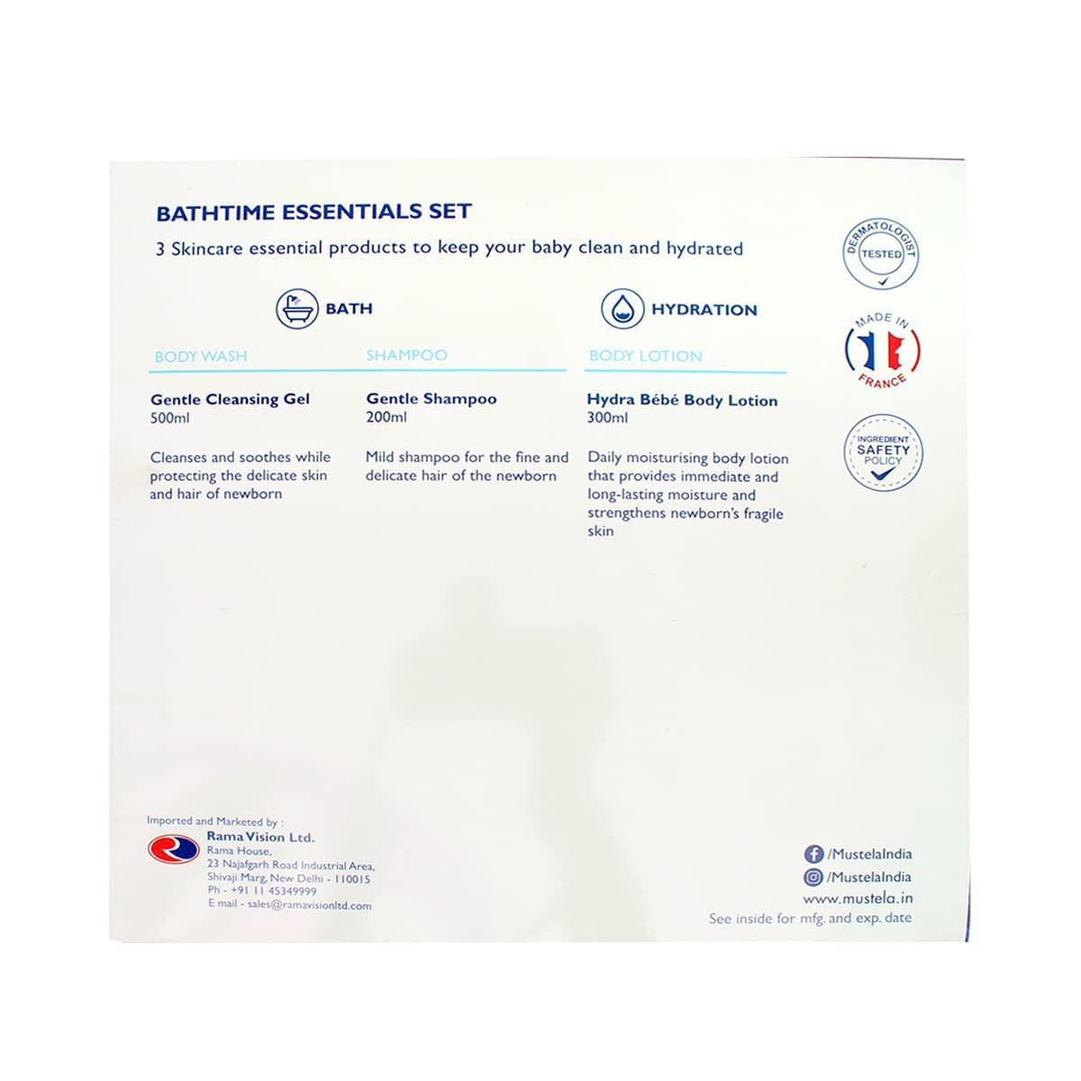 The Mustela Bathtime Essential Set includes 3 must-have baby bath items: Hydra Bebe Body Lotion, Gentle Cleansing Gel, and Gentle Shampoo. This carefully curated set provides complete daily care for your babyโs delicate skin and hair. Formulated with natural ingredients like Avocado Perseoseยฎ, the products gently cleanse, hydrate, and protect, making bath time safe, enjoyable, and effective from birth onwards.