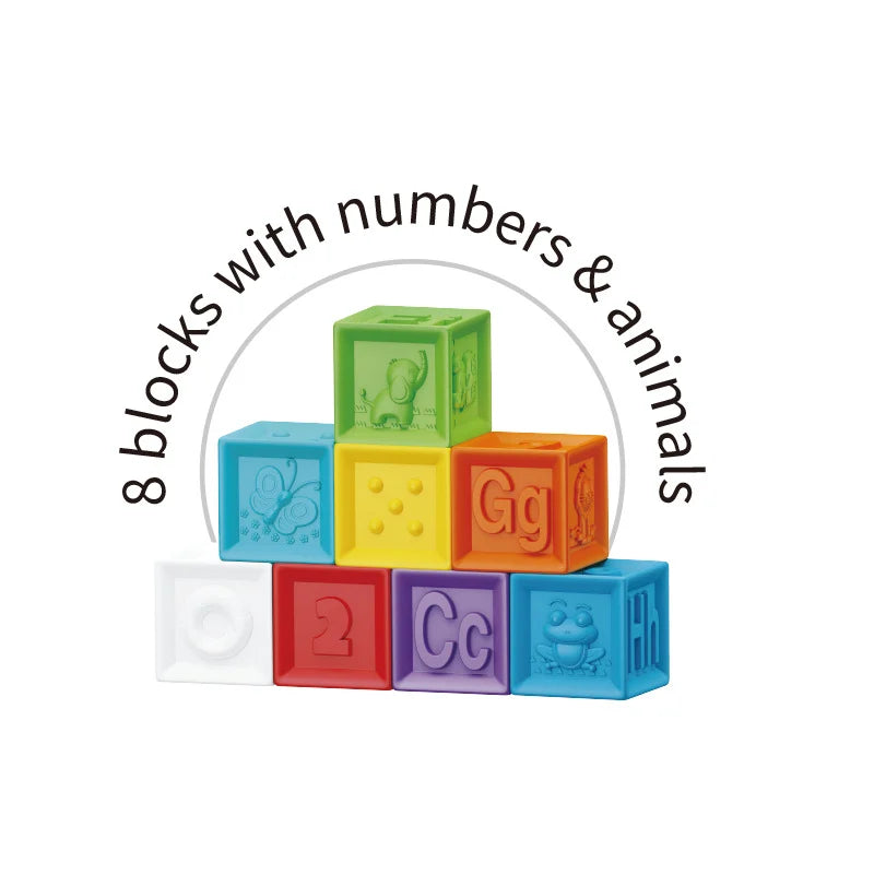 Contents: 8 Colourful Blocks & 6 Colourful, Textured & Squishy Balls