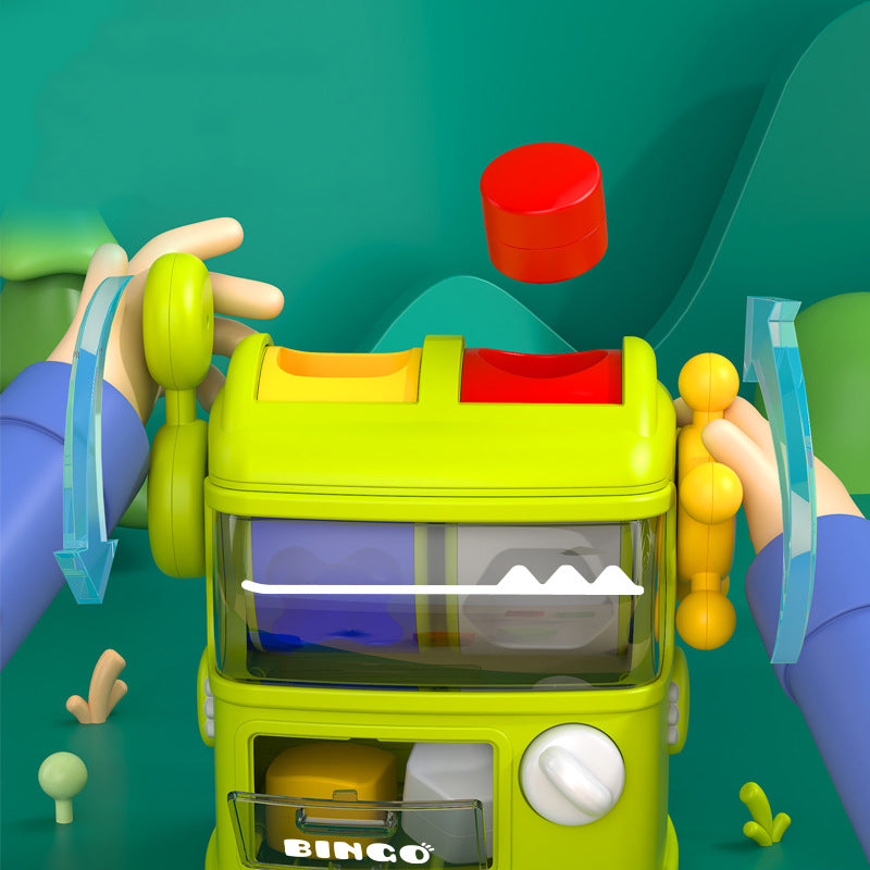 - Shape Matching game: By turning the Knob and Lever on both sides, you can adjust the two middle sliders to match the corresponding shapes. Once matched, simply insert the shape into its designated slot.