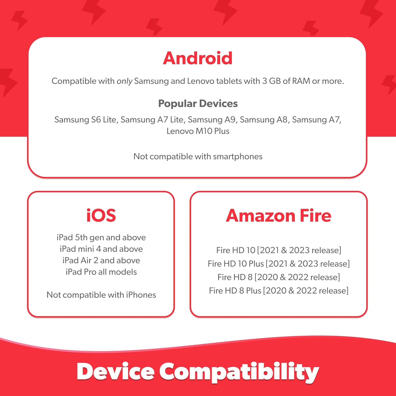 - 🎈 COMPATIBLE DEVICES: Tacto works with a range of tablets: iPad 5th gen and above (iPad 2 and iPad Mini 1 not supported) Android tabs 7-inches and above, minimum 2GB RAM (Samsung Tab A and S7+ not supported), Fire HD 10 - 2021 (Fire 7 not supported). Tacto app is absolutely free to download from the Apple App Store or Google Play Store