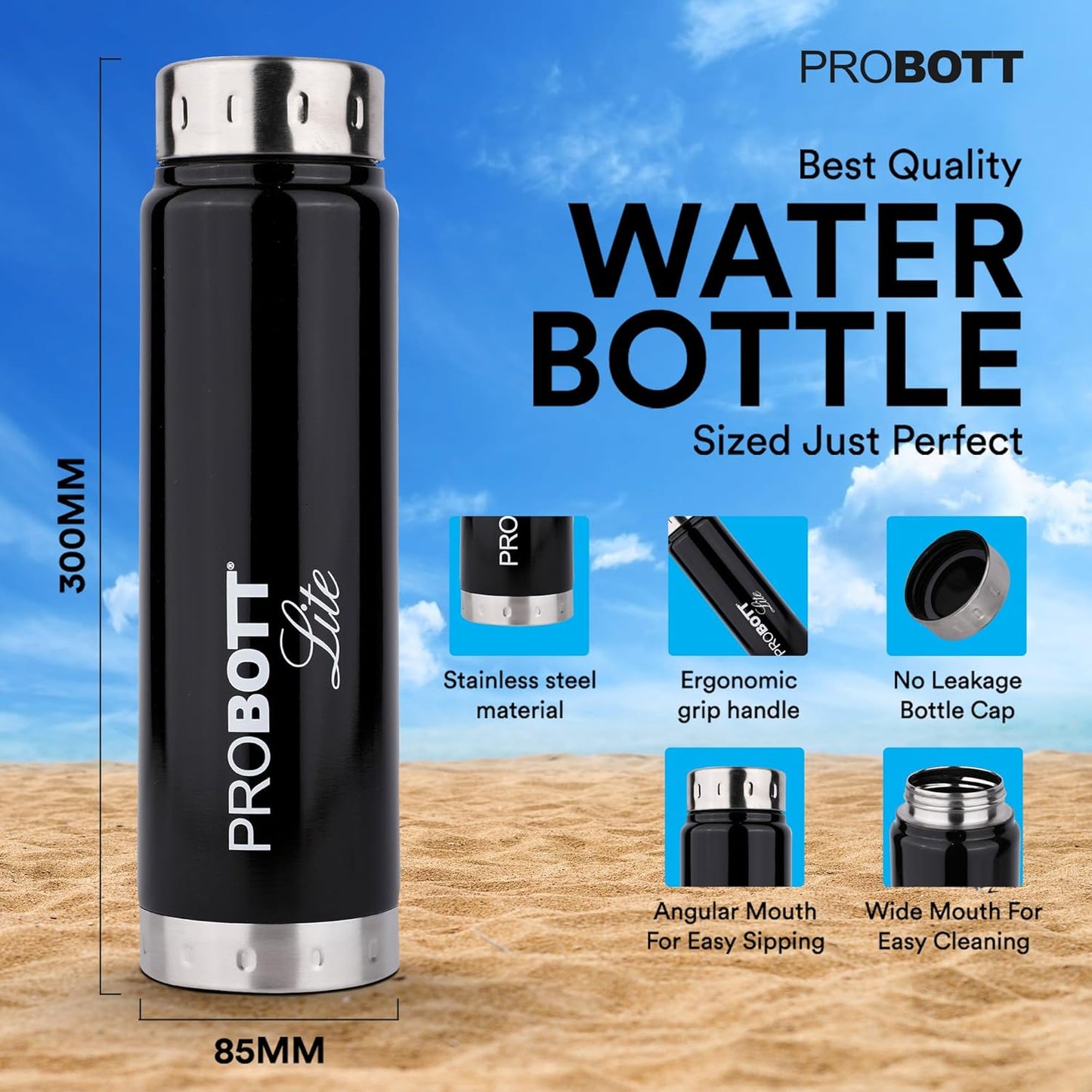PROBOTT LITE, is one of the leading brands. Probott lite Bottles feature Single wall stainless steel bottle,BPA Free,Unbreakable stainless steel construction,made from high quality stainless steel,hygienic push button sip through lid with locking mechanism,Inner stainless steel body permits easy cleaning & maintains Hygienic,Special design lid eliminate leakage issues & gives a leak proof stylish product.Carry your protein shake, juices and soups in the bottle while you go hiking and camping. You can simply unscrew the lid to refill the bottle. Access the sipper by lifting the cap. The stylish exterior and color combination makes this bottle a must have.