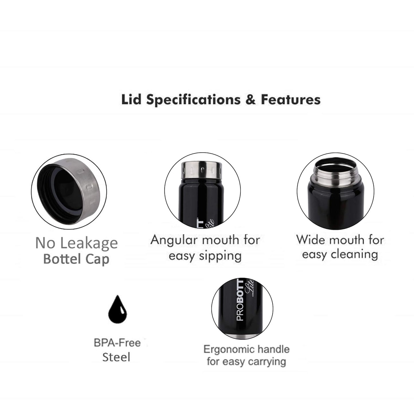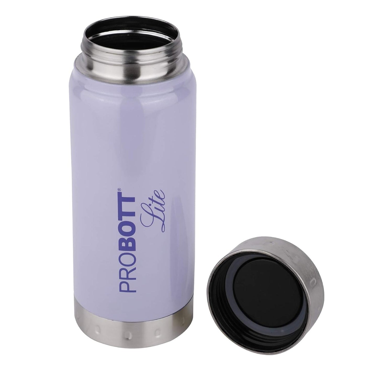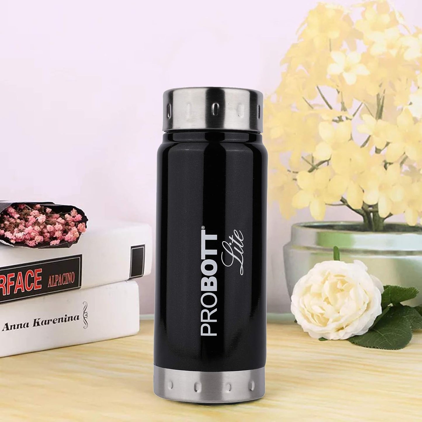 PROBOTT, is one of the leading brands. Probott Bottles feature BPA Free, Hot & Cold, Inbreakable stainless steel construction, thermos vacuum insulation technology for maximum temperature retention, keep beverages cold for up to long hours, hygienic push button sip through lid with locking mechanism.Use this Probott Sports Bottle to retain the temperature of your warm and cool beverages. It has been designed with the technology that enhances temperature retention. Carry your protein shake, juices and soups in the bottle while you go hiking and camping. You can simply unscrew the lid to refill the bottle. Access the sipper by lifting the cap. The stylish exterior and color combination makes this bottle a must have.