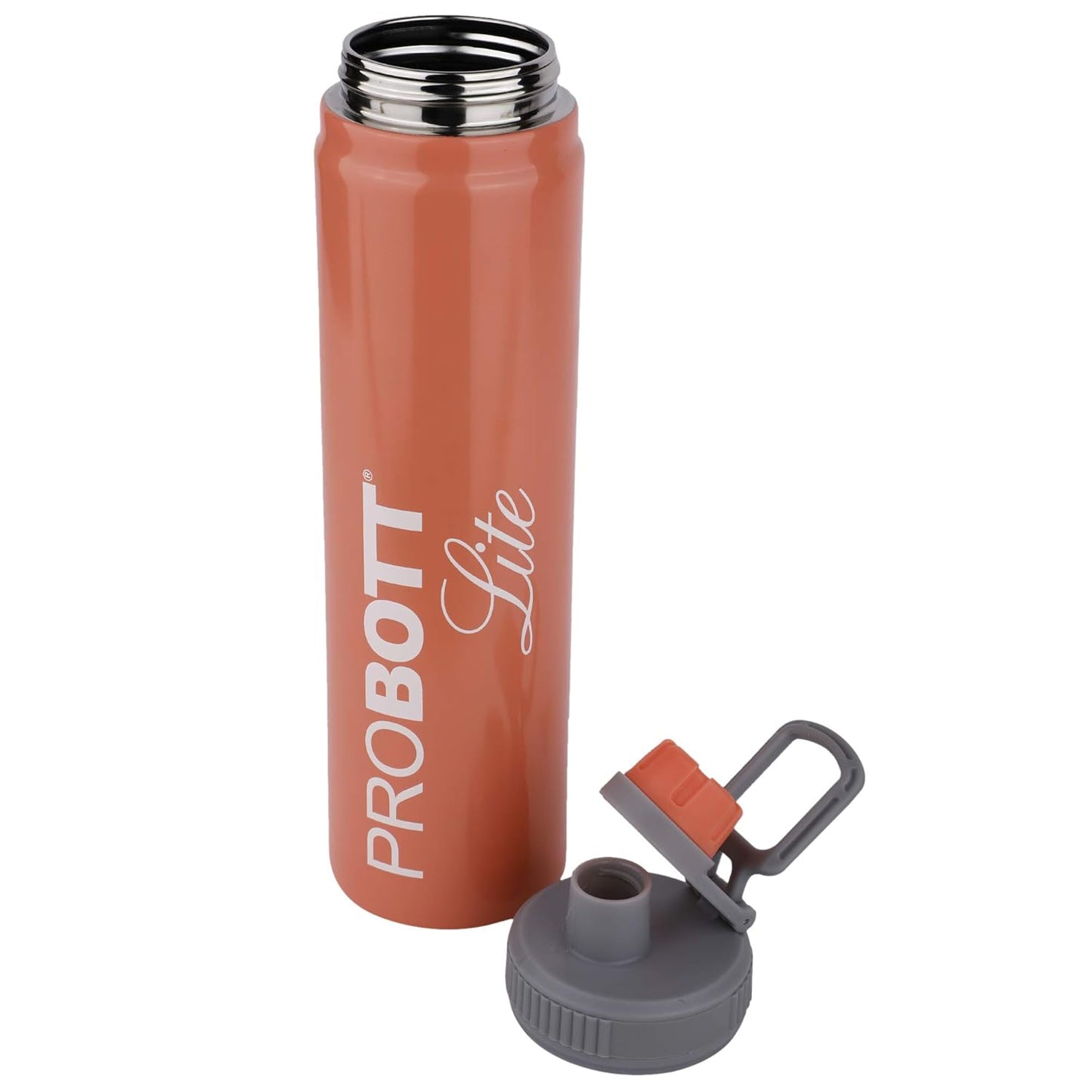 PROBOTT LITE, is one of the leading brands. Probott lite Bottles feature Single wall stainless steel bottle,BPA Free,Inbreakable stainless steel construction,made from high quility stainless steel,hygienic push button sip through lid with locking mechanism,Inner stainless steel body permits eaasy cleaning & maintains Hygienic,Speacial design lid eliminate leakage issues & gives a leak proof stylish product.Carry your protein shake, juices and soups in the bottle while you go hiking and camping. You can simply unscrew the lid to refill the bottle. Access the sipper by lifting the cap. The stylish exterior and color combination makes this bottle a must have.