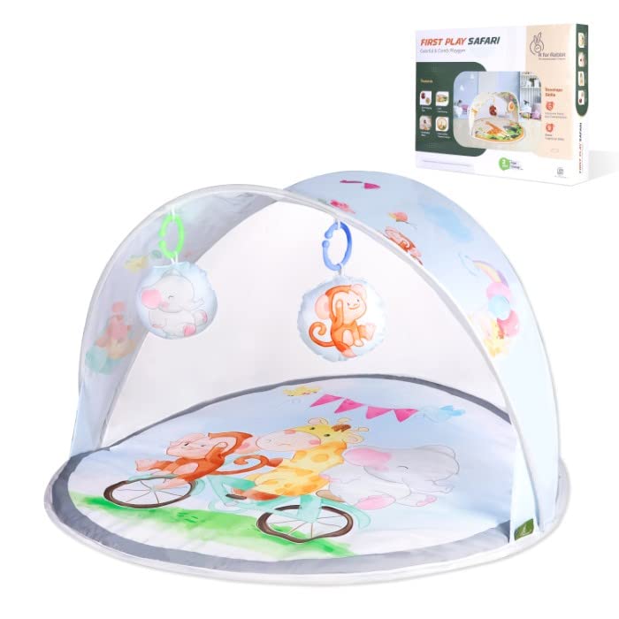 Bring joy and comfort to your baby with the R for Rabbit First Play Safari Baby Play Gym. Specially designed for infants aged 2 months and above, this portable play mat provides a safe and cozy spot for playtime. The soft hanging toys encourage reaching, grasping, and sensory exploration, helping babies develop motor and coordination skills. Lightweight and easy to carry, this activity play gym mat can be used at home or while traveling. The soothing grey color makes it a stylish addition to any nursery.