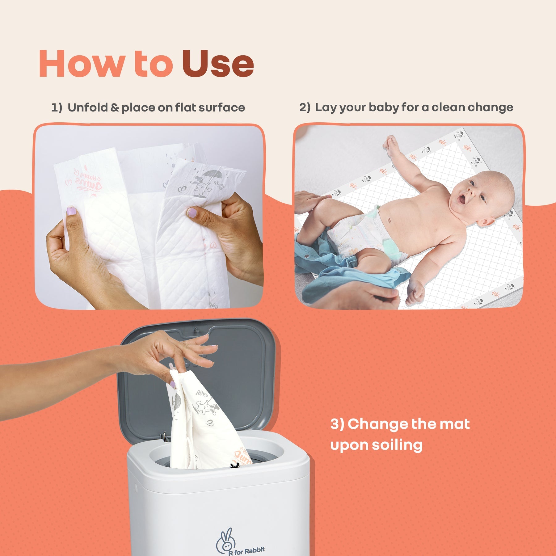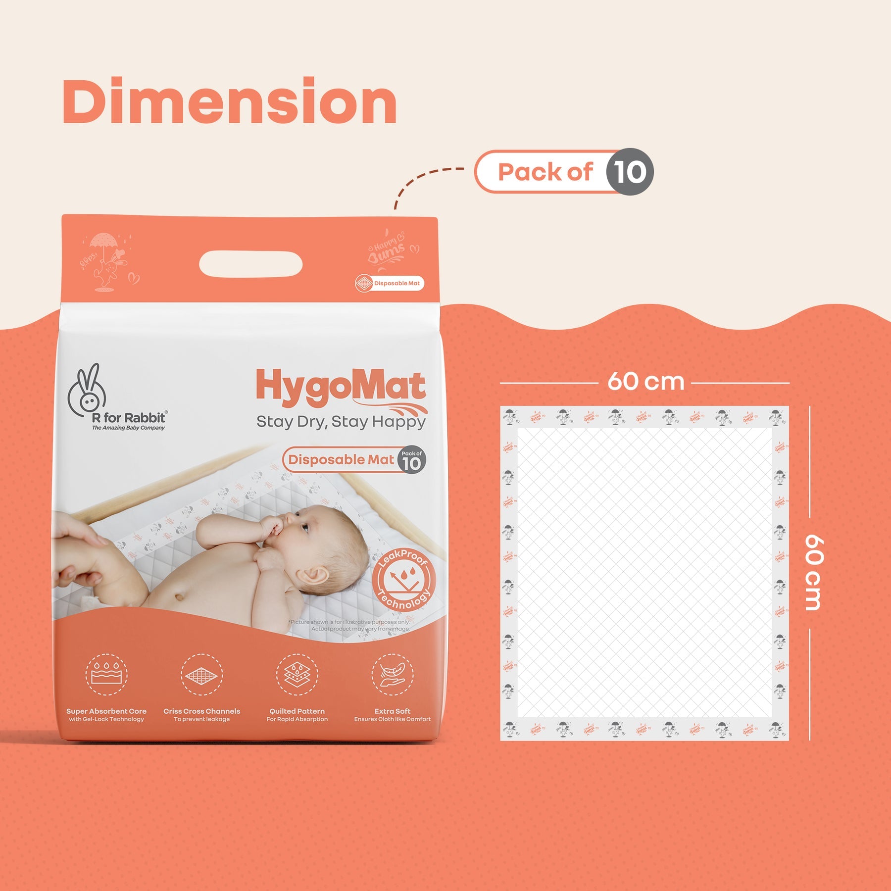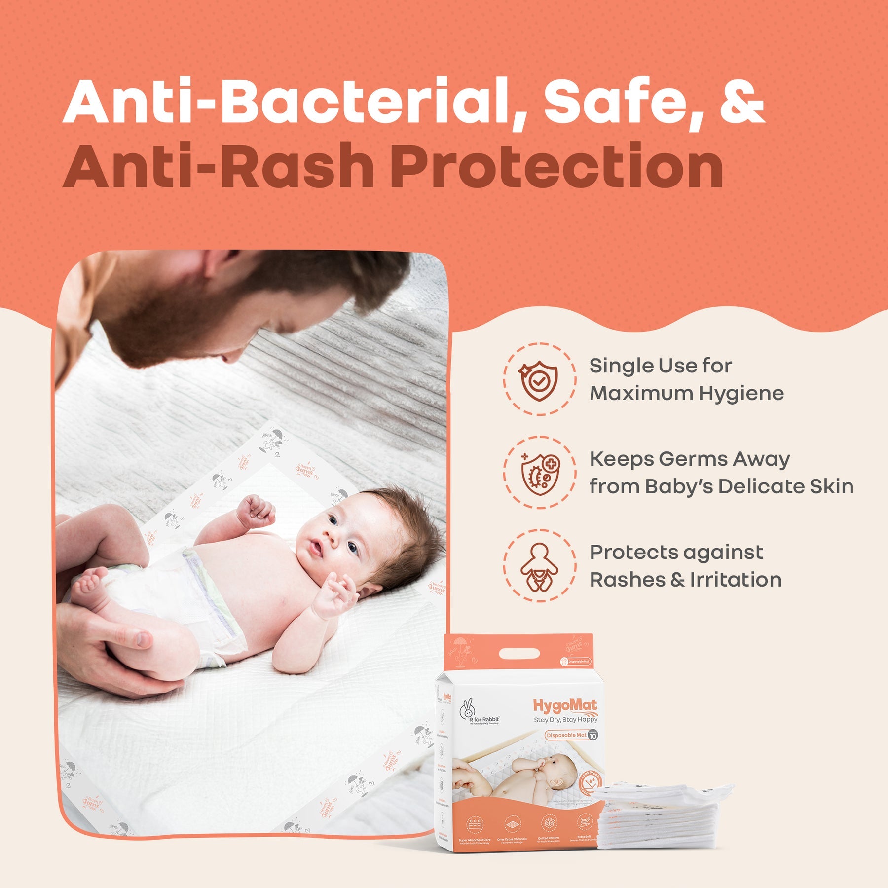 R for Rabbit HygoMat is a soft, anti-bacterial, and leak-proof disposable hygiene mat designed to offer complete cleanliness and comfort for your baby during diaper changes or playtime. Its multi-layer absorbent structure ensures dryness while preventing any leaks. The anti-bacterial surface keeps your baby protected from germs, making it a perfect choice for both home and travel.