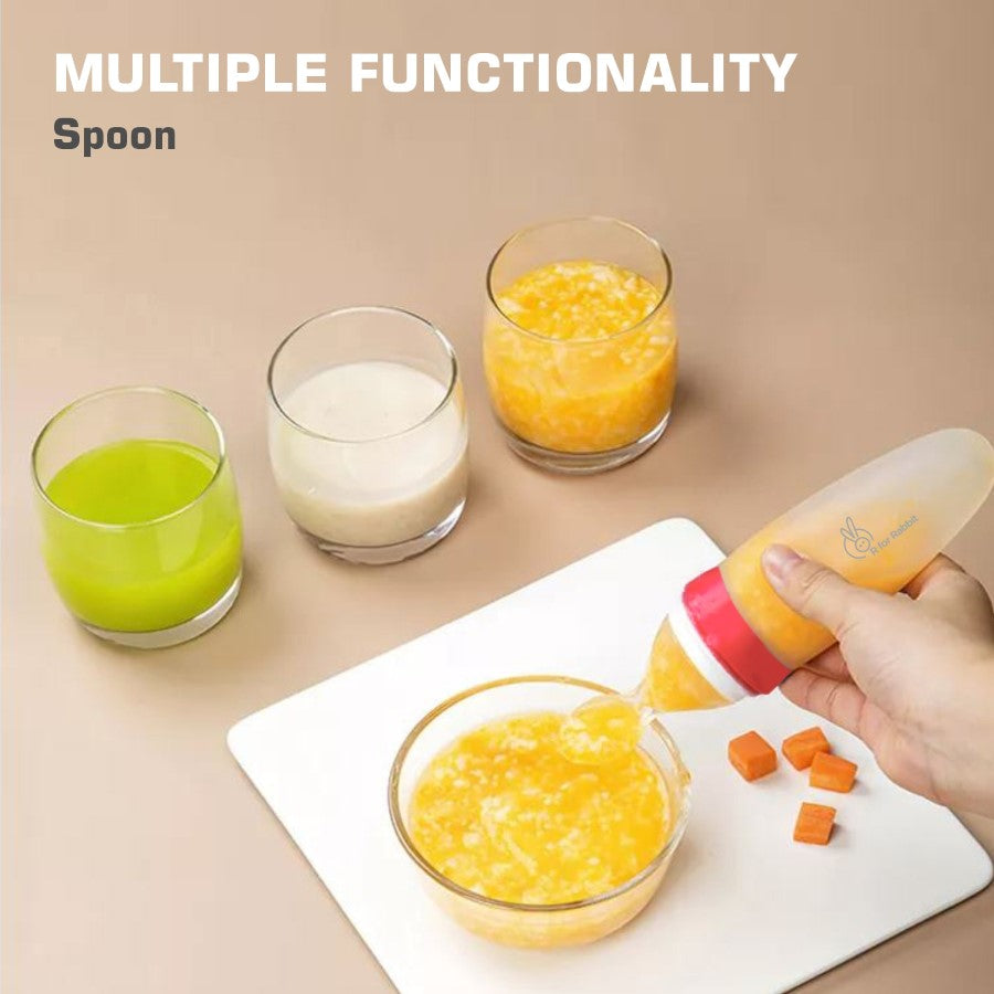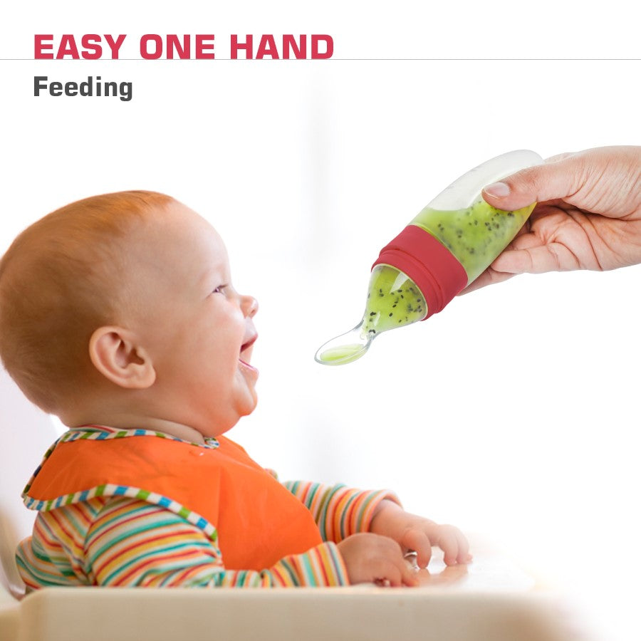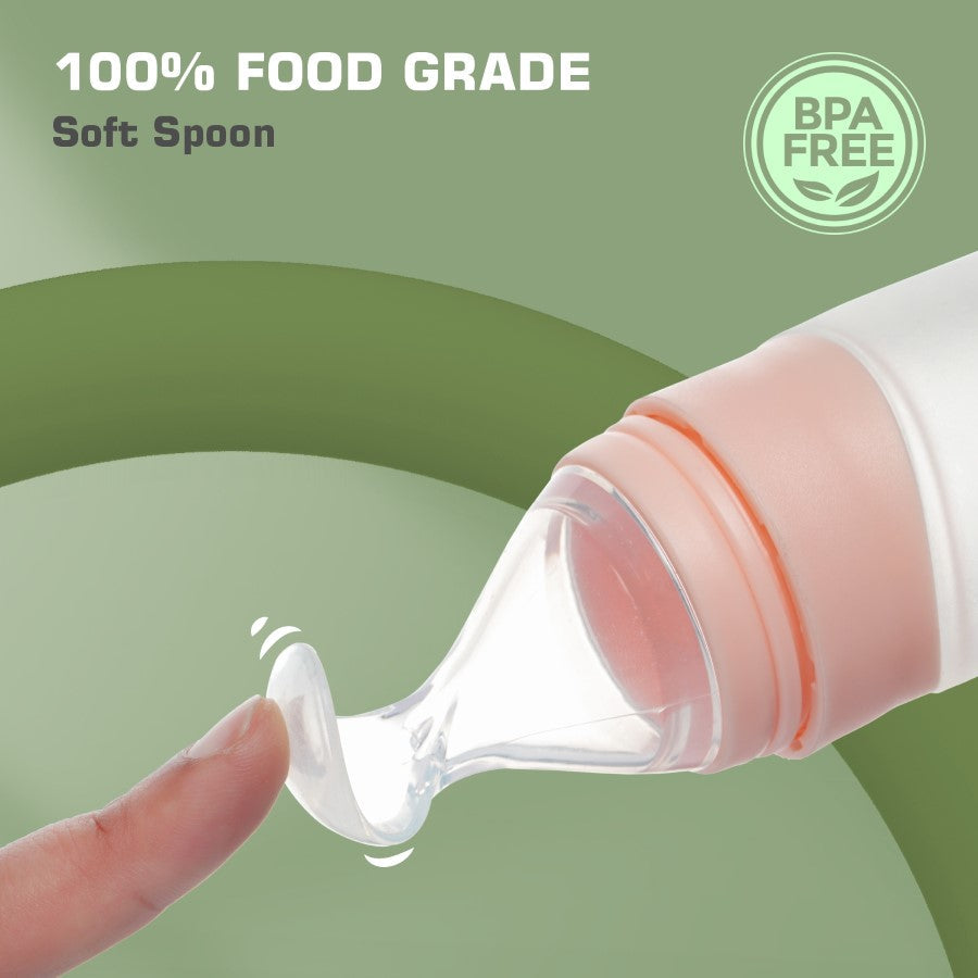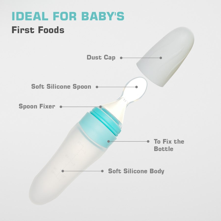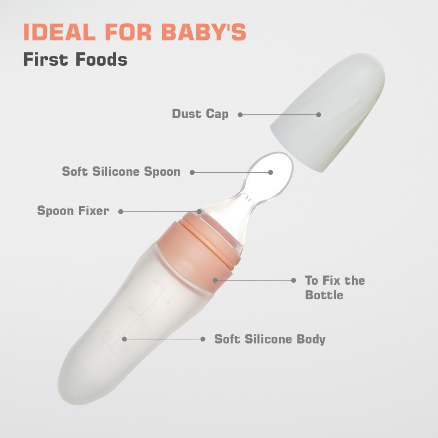 - 🎈 Easy To Use: First Feed Feeder can be used by simply holding it with one hand and pressing the soft silicone container to bring food on the spoon and feed the baby.