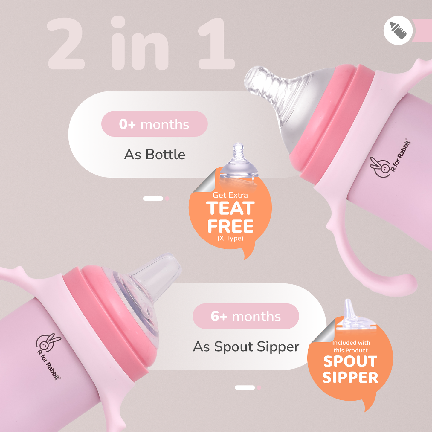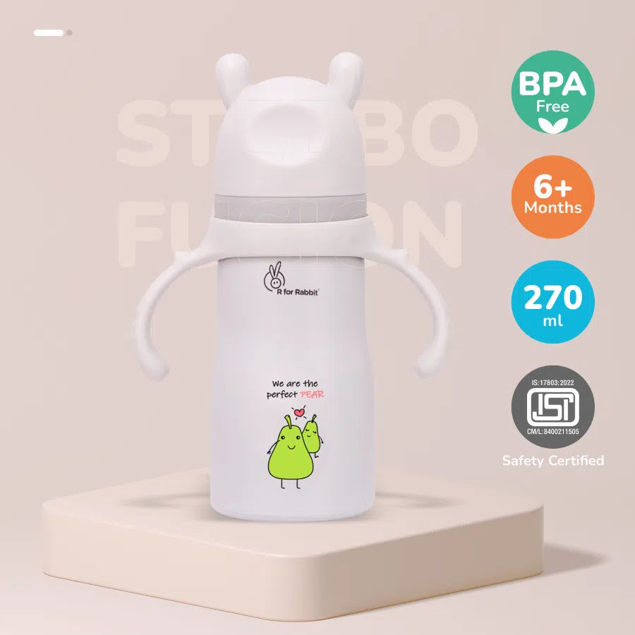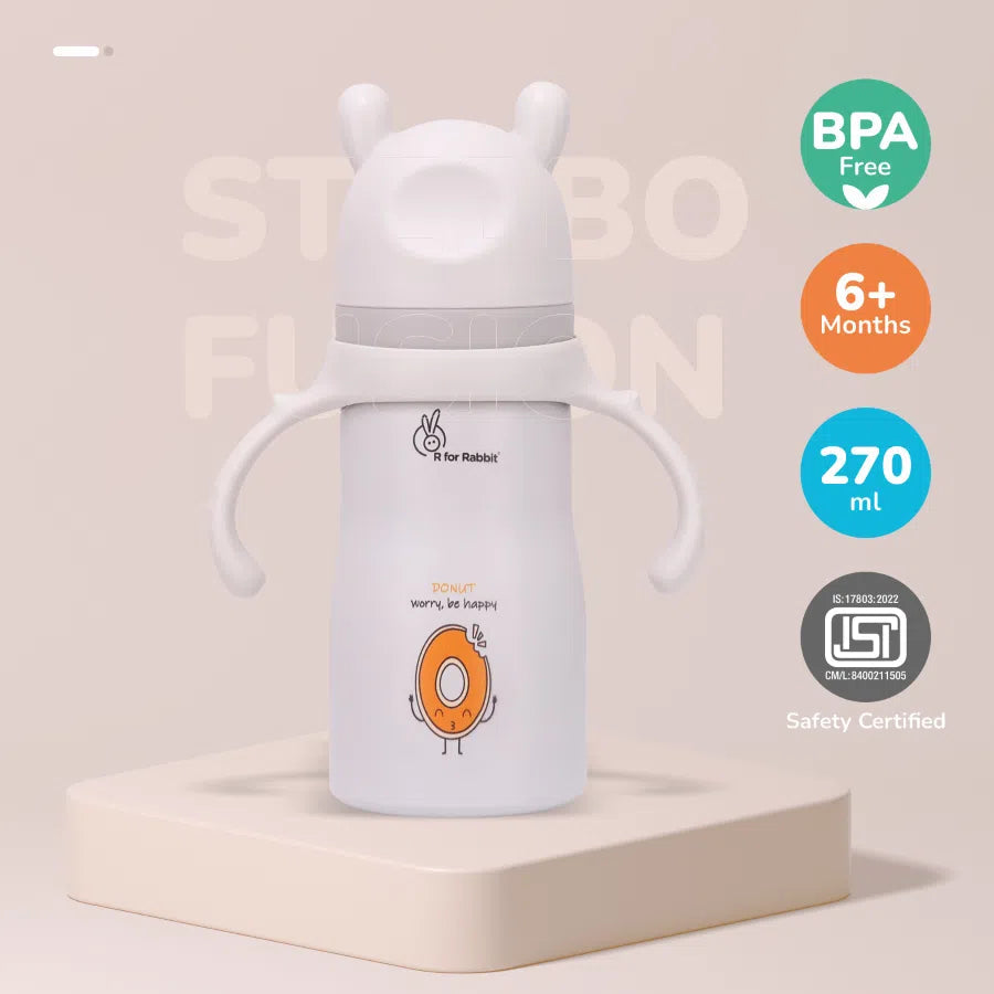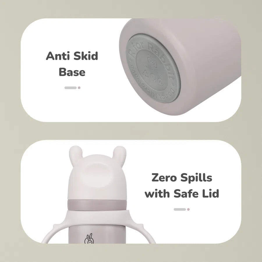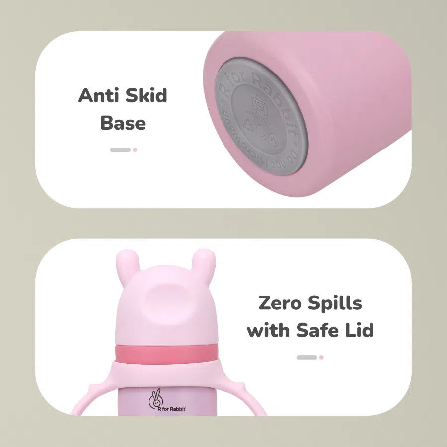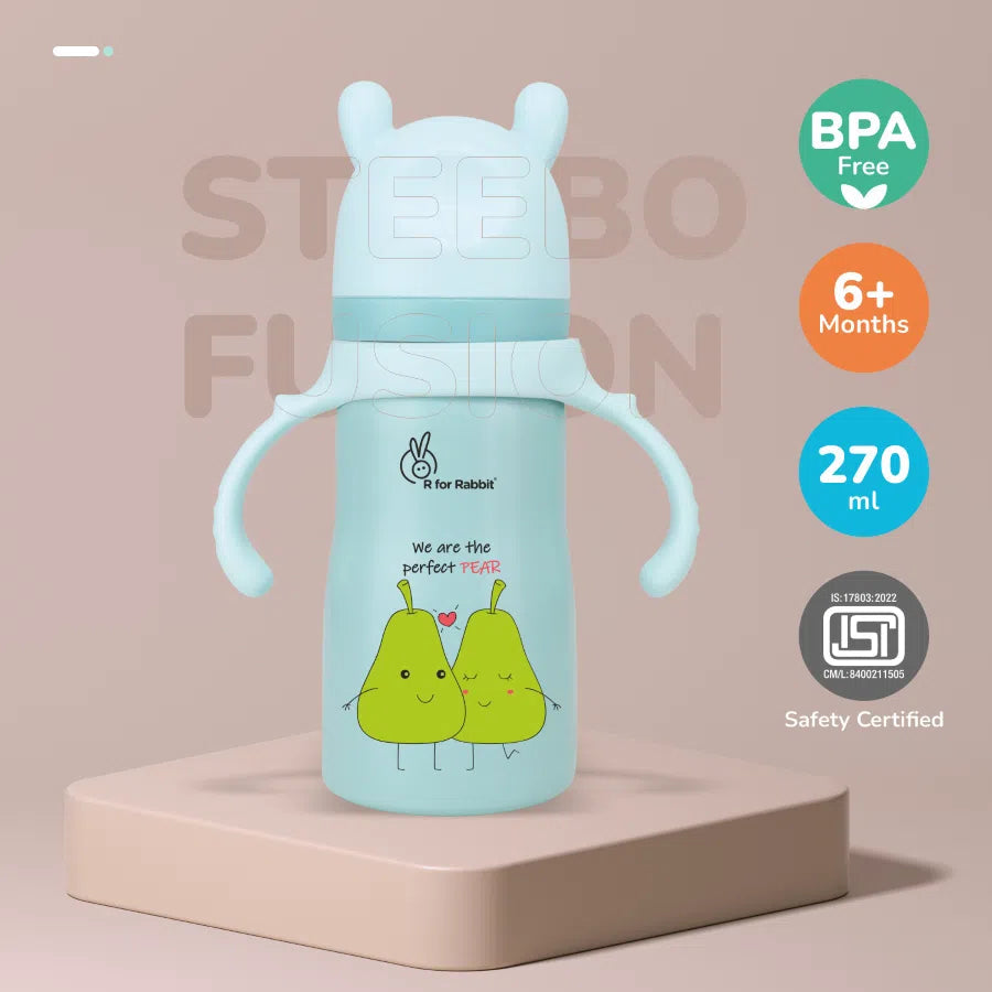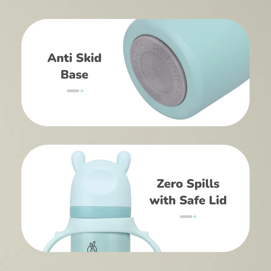 R for Rabbit Steebo Fusion Spout Cup Stainless Steel Bottle for Kids 270ml is thoughtfully designed to make your little one’s transition from bottle to cup smooth and safe. Crafted from premium food-grade stainless steel, this spout cup is BPA-free, durable, and hygienic for everyday use. The soft silicone spout ensures gentle sipping, protecting your child’s tender gums and developing teeth. With double-wall insulation, it keeps liquids warm or cool for extended periods. The leak-proof lid and easy-grip design make it ideal for both home and travel. Perfect for babies and toddlers learning to drink independently.