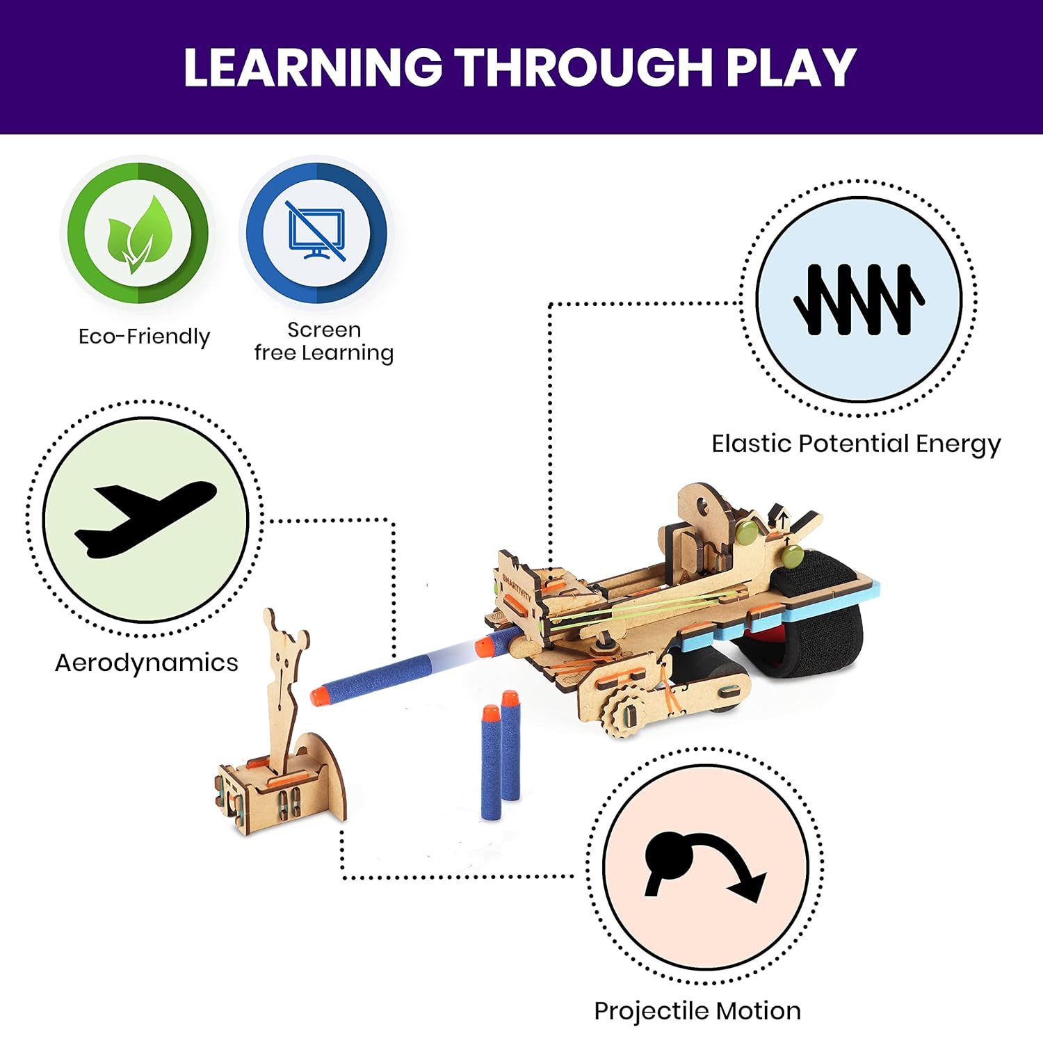 Smartivity Bullseye Bow is a fun and educational STEM build-and-play kit that lets kids assemble their own working bow and arrow set. Through hands-on construction, children learn about elastic force, tension, and basic mechanics while engaging in interactive play. Designed to be safe and kid-friendly, this activity encourages creativity, concentration, and physical coordination, making it a great choice for both learning and active play.