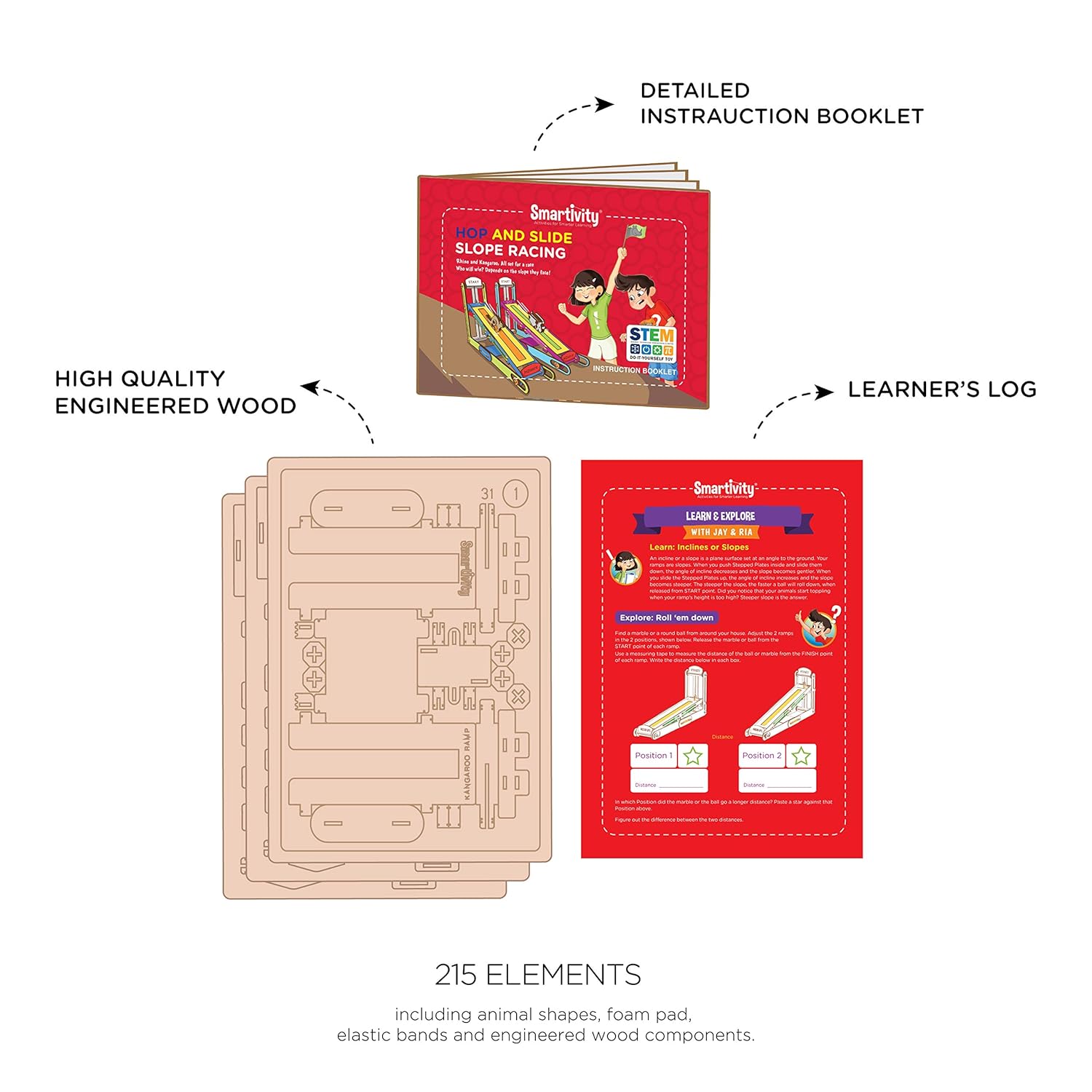 Smartivity Hop n Slide Slope Racing is an engaging STEM DIY toy that lets kids build a dynamic race track with slopes and ramps to send objects sliding and hopping through fun obstacles. Designed to teach basic physics concepts like gravity, momentum, and motion through hands-on play, this activity encourages creativity, problem-solving, and engineering thinking. Ideal for kids who love building and racing challenges, it’s a great educational toy for classrooms, playrooms, and STEM learning at home.
