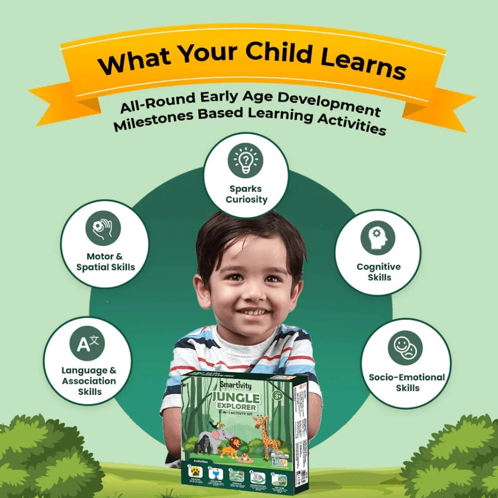 Made from high-quality, eco-friendly wooden materials, the kit is safe, durable, and easy to assemble without glue or tools. Ideal for screen-free learning, Smartivity Jungle Explorer is perfect for home play, classrooms, and gifting to young explorers.