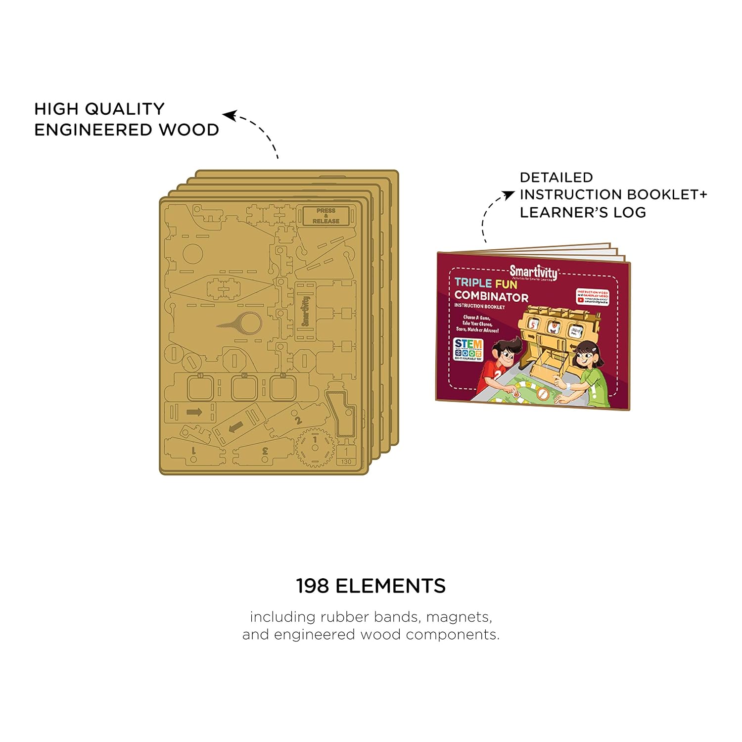 Smartivity Triple Fun Combinator is a versatile STEM educational toy that lets kids combine and build multiple play-based models from one set of components. Designed to spark creativity and critical thinking, this kit encourages children to explore engineering concepts such as mechanics, motion, and structural design through hands-on construction. With the ability to create different functional models, it offers extended play value and supports problem-solving, imagination, and STEM learning in a fun, interactive way.